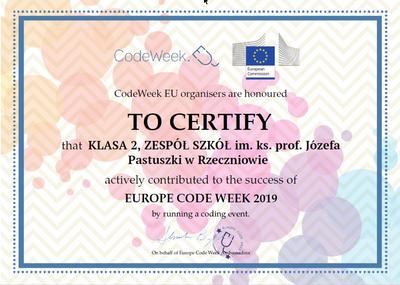 Klasa 2A została zgłoszona i wpisana na mapę europejskich działań z dziesięcioma wydarzeniami w ramach Code Week EU. Uczestniczyliśmy w konkursie „Wyzwania Code Week z Uczymy Dzieci Programować” organizowanym przez EduSense. Od 7 do 18 października wykonywaliśmy zadania związane z elementami kodowania i programowania. Inspirując się cyklem scenariuszy zajęć ogólnopolskiego programu Uczymy Dzieci Programować zaplanowaliśmy i realizowaliśmy różnorodne zajęcia. Poznaliśmy historię Code Week, stronę www.codeweek.eu, na której uczniowie odszukiwali wydarzenia naszej szkoły. Szukaliśmy kodu w codziennych czynnościach, tworzyliśmy własne kody i zakodowane obrazy z kolorowych kubeczków na wirtualnej i tradycyjnej macie. Na zajęciach polonistycznych powstały zakodowane bajki i baśnie, a gra matematyczna, w której roboty musiały dotrzeć do swoich baz, pozwoliła doskonalić umiejętność dodawania w zakresie 20. Nie obyło się także bez zakodowanej gimnastyki. Jednak największą frajdę sprawiło drugoklasistom programowanie w Scrach Junior oraz rozszerzanie rzeczywistości na kolorowankach za pomocą aplikacji Puzzle AR. Do tygodnia kodowania włączyła się również 12 Gromada Zuchowa. Na instrumentach perkusyjnych zagrała zakodowana orkiestra, po czym zuchy w szóstkach tworzyły kolorowe partytury na Bum bum rurki. W wielkim skupieniu odgrywały popularne melodie.