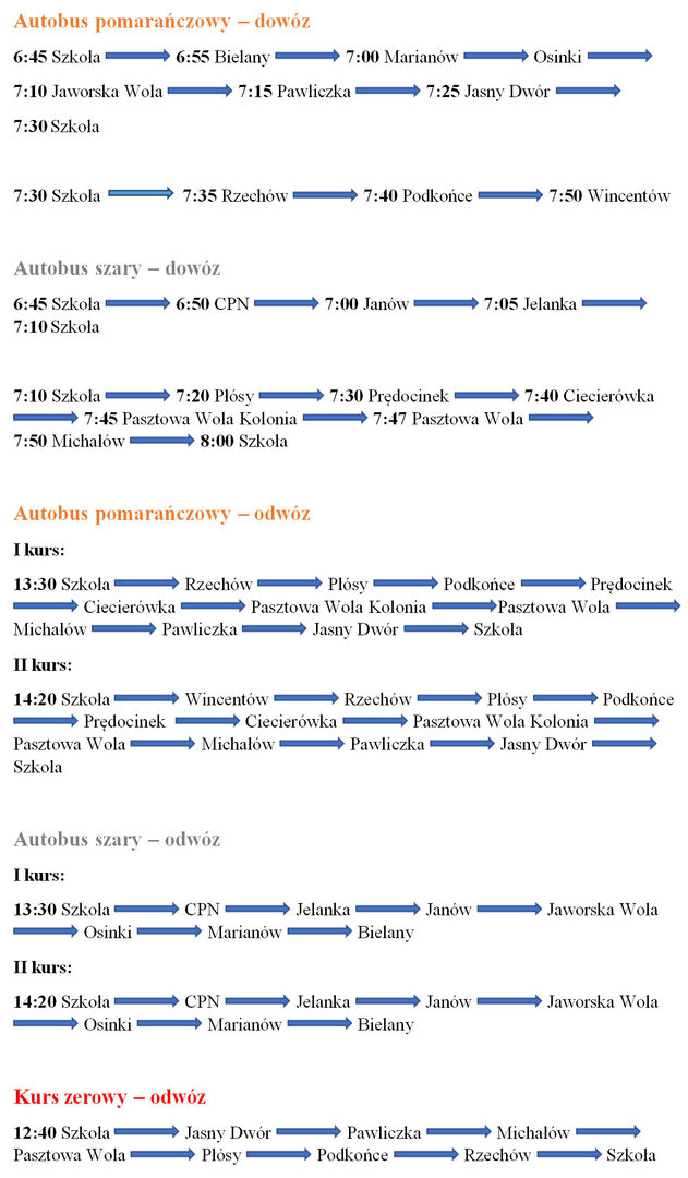 *Uwaga: Likwidacji uległ przystanek: -PASZTOWA WOLA-KOŚCIÓŁ, zamiast tego UCZNIOWIE WSIADAJĄ NA PRZYSTANKU PŁÓSY-SKRZYŻOWANIE.
